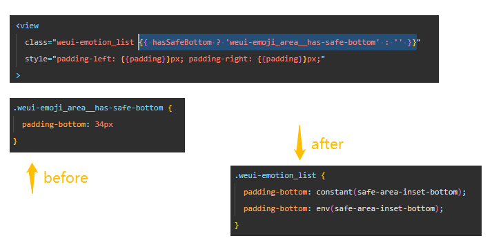 原有方式:通过接口监听systemInfo.model.indexOf('iPhone X') 给 view 添加专属 class