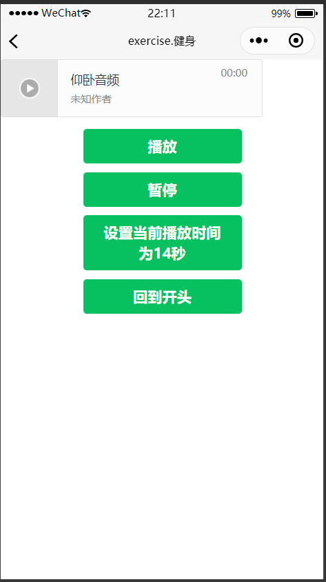 应用场景:健身小程序,顾名思义,用于健身时的辅助工具。用户在锻炼身体时小程序可以提供音乐以及提示音,用户可以跟着提示音做动作。例如举哑铃时小程序会提示”一、二、一...”,用户便可以在听到提示音以后做下一个动作。