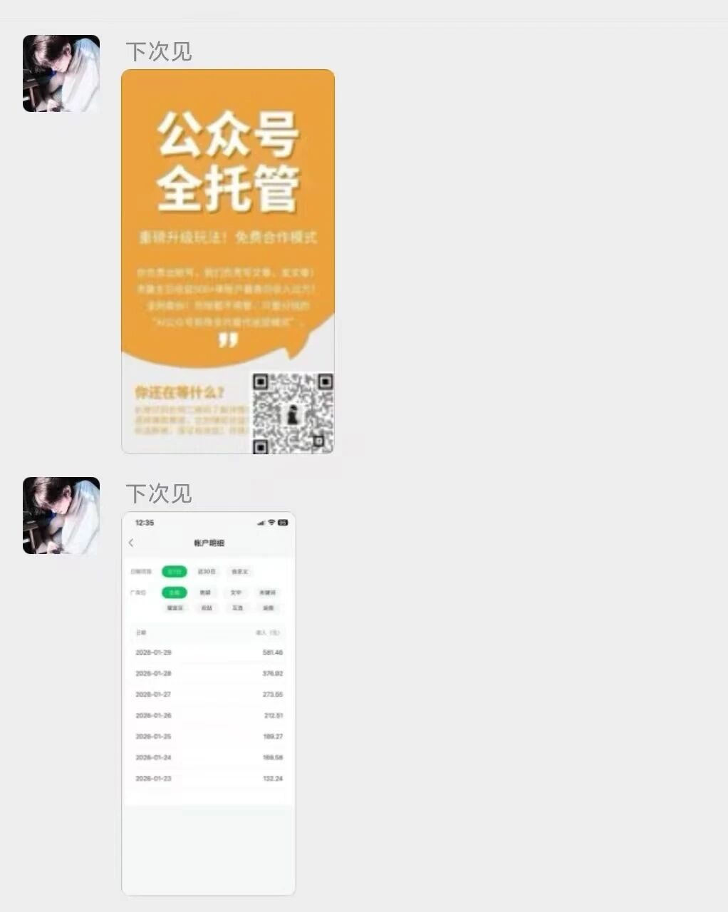 对方通过企业微信主动联系我,声称是一家正规的公众号代运营公司,可提供内容策划、稿件发布等服务,并谈妥合作方式。