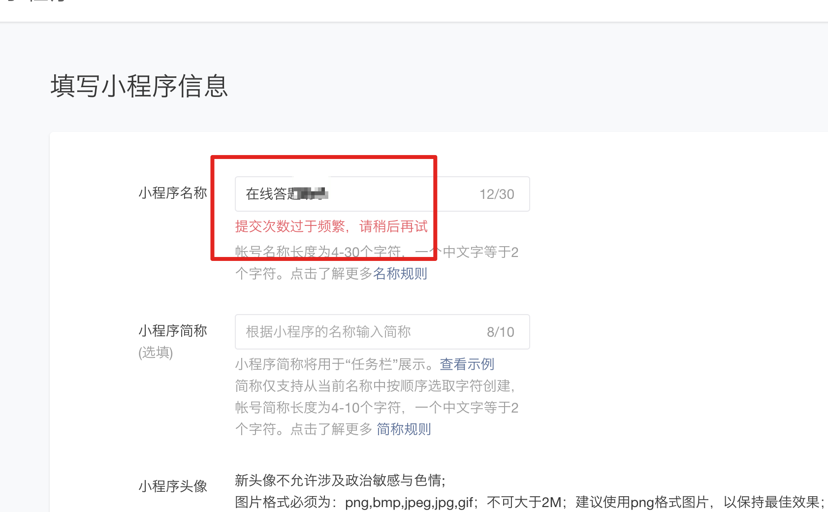 相比经常注册小程序的同学会遇到一个问题,那就是在后台多次重试之后,频繁而不能继续注册了。