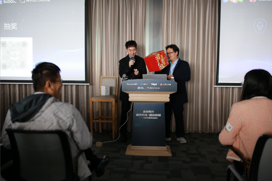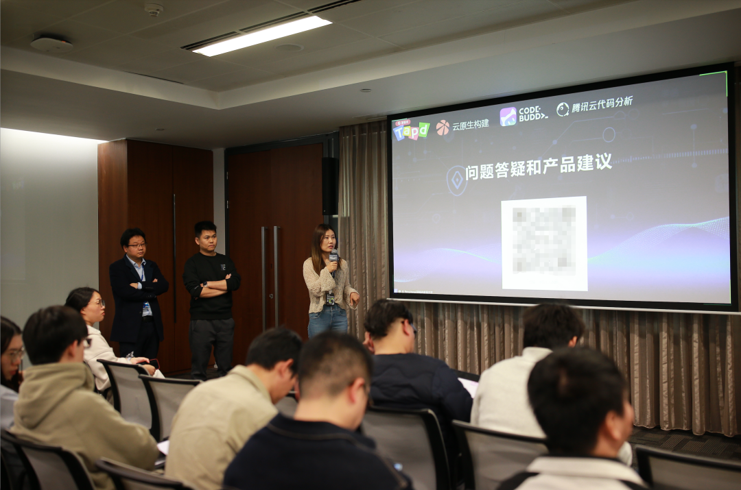 在问题答疑与产品建议环节,现场观众踊跃举手,围绕分享内容、产品使用场景等提出疑问与建议。TAPD 产品和技术团队现场逐一解答,认真记录每一条宝贵反馈,同时为提问观众送上定制小公仔,让交流更有温度。这一环节不仅搭建了高效的沟通桥梁,更体现了 TAPD 重视用户反馈、持续优化产品的初心。