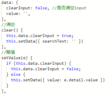测试后,果然,清空的按钮的事件是有触发,方法执行之后(setData),值是有改变了的。