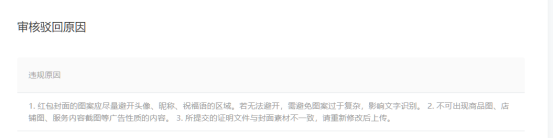 首先,微信系统会自动给上传的封面加上“恭喜发财,大吉大利 ”的系统字样。系统内容是固定不变的,所有要求封面的内容不能跟系统区域有重叠,如果不能完全避免也需要设置不同的背景颜色,以突出系统内容。不然会被毙掉。