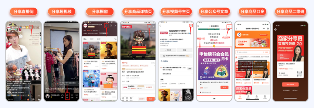 分享员分享带小店商品的直播间、短视频、橱窗、商品详情页、视频号主页、公众号文章、商品口令、商品二维码,好友下单都可以获得佣金奖励。