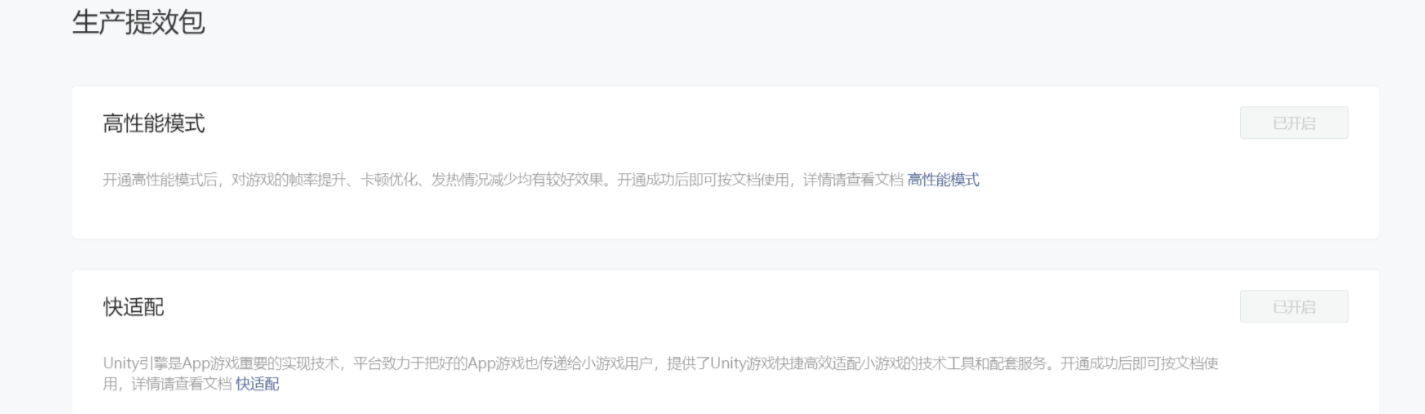 路径:“能力地图” -> “生产提效包”,打开高性能模式,打开快适配