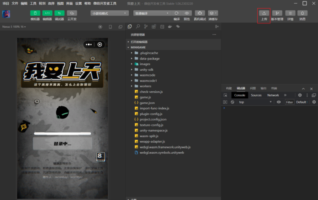 2)将游戏上传至微信MP平台(https://mp.weixin.qq.com)按照提示填写上传信息