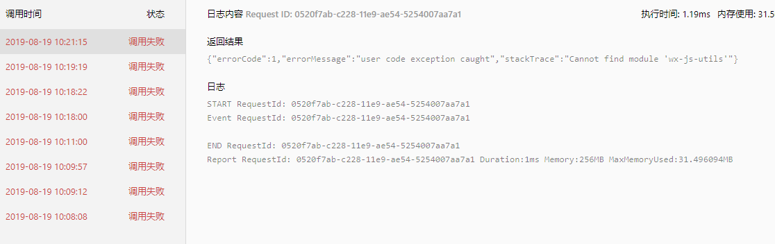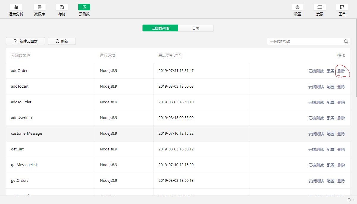 第一步,打开开发者工具里的云函数控制台,找到出错的云函数。