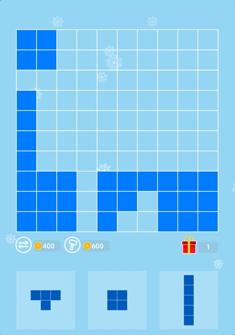 对于1010类型的消除游戏来说,数据格式要简单很多,因为只需要 0 和 1 (计算机最喜欢的东西),只要一行或者一列的数字都是 1 就满足消除条件,是不是有一种豁然开朗的感觉。