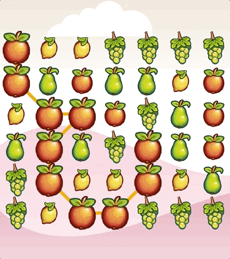 任意交换相邻的两个元素,交换后,如果在水平或者竖直方向上满足相邻的至少 3 个元素相同这一条件,就消除这些元素。因为规则是满足 3 个相同的元素即可消除,所以又被称作是“三消”。