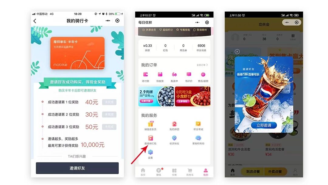 但也不必过于悲观,既然微信官方开放了小程序分销接口,肯定可以合规合法进行。下面我们看看大商家是怎么玩的: 摩拜、每日优鲜、真功夫。