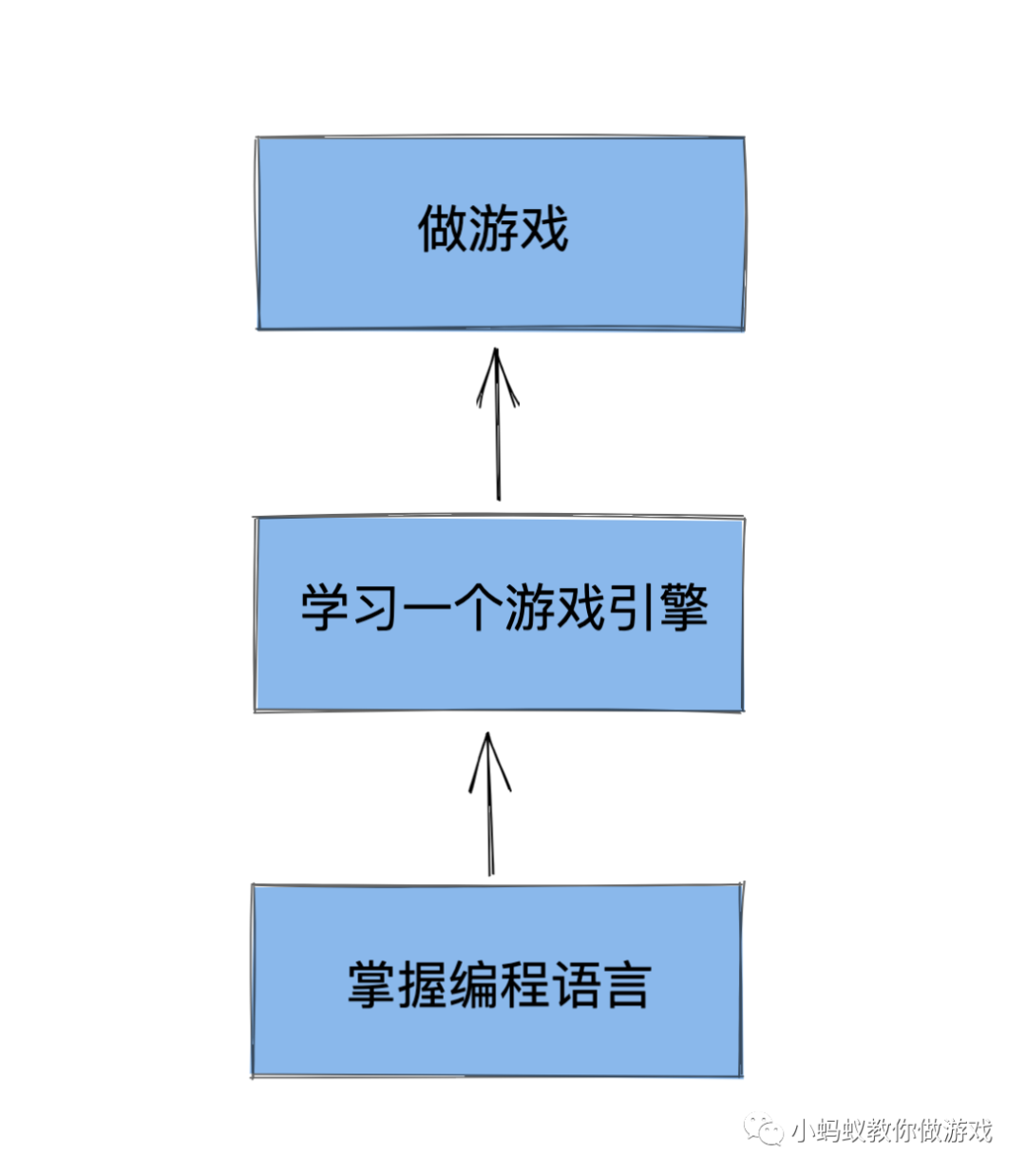 如果你了解过游戏开发的课程或者是培训的话,那么大体上都是这个过程,首先你要掌握一门编程语言的基础,因为这是你进行下一步的必要前提。接着,你需要学会使用一个游戏引擎,这个游戏引擎是你日后用于制作游戏的工具,在具备了这些前提后,你才能够去开始做游戏。