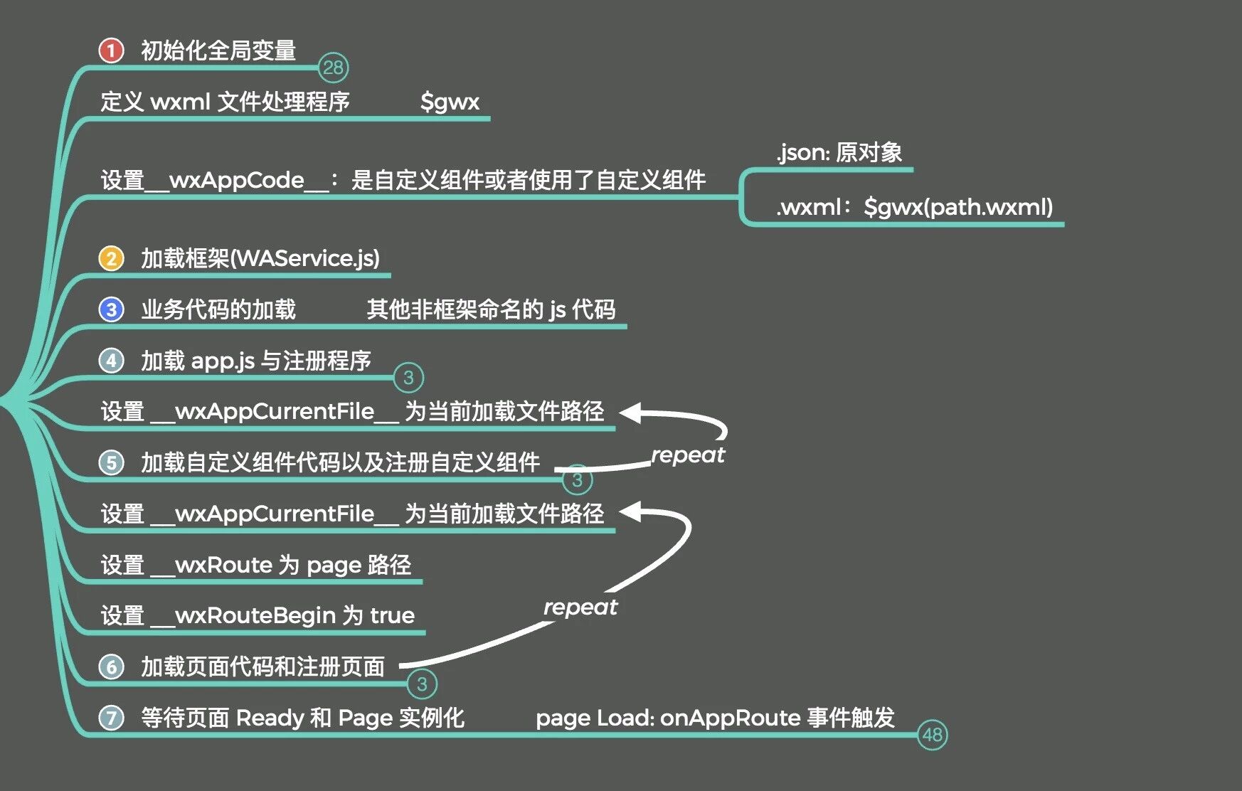 下面详细介绍了 app.js,自定义组件,页面 js 代码的处理流程。