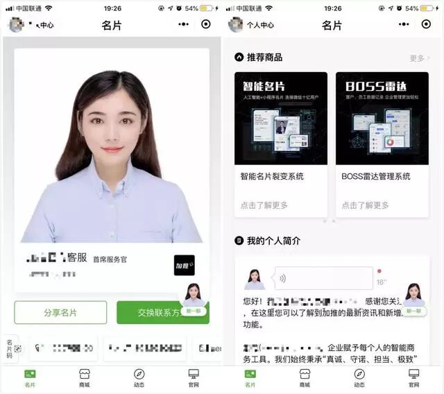 他口中的名片小程序,不是简单的带有名片信息的小程序,而是基于名片这个基础展示,前端集成了电商、网站主页功能,后端加上数据分析的智能名片。