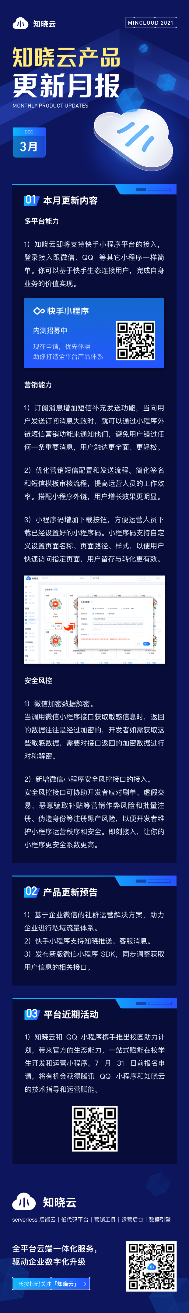 今天知晓妹将把本月的更新内容进行大汇总,让你可以快速了解:知晓云近期有哪些新能力已上线,正在做哪些大家期待已久的功能。