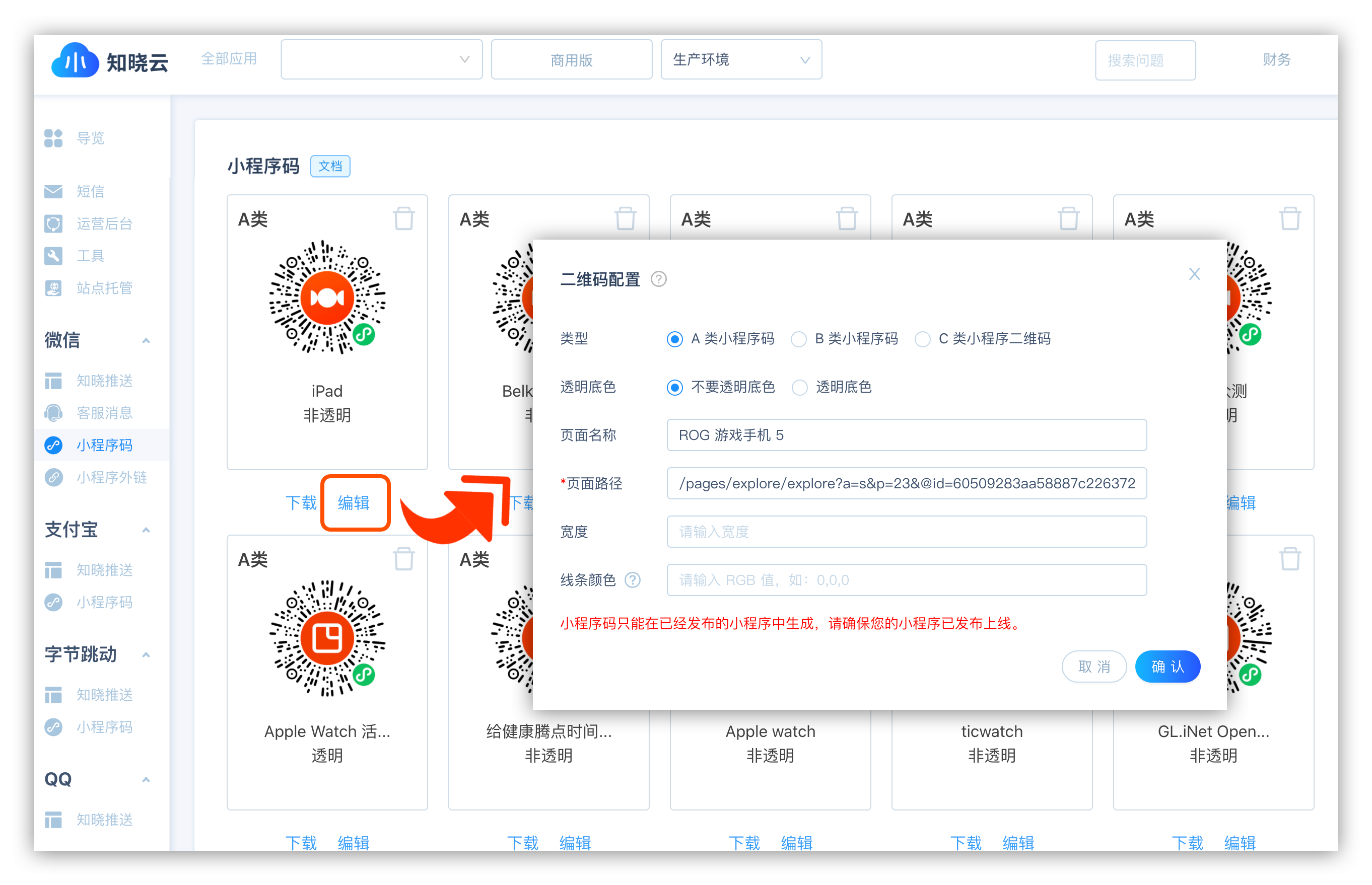 3、小程序码增加下载按钮,方便运营人员下载已经设置好的小程序码。小程序码支持自定义设置页面名称、页面路径、样式,以便用户快速访问指定页面,用户留存与转化更有效。