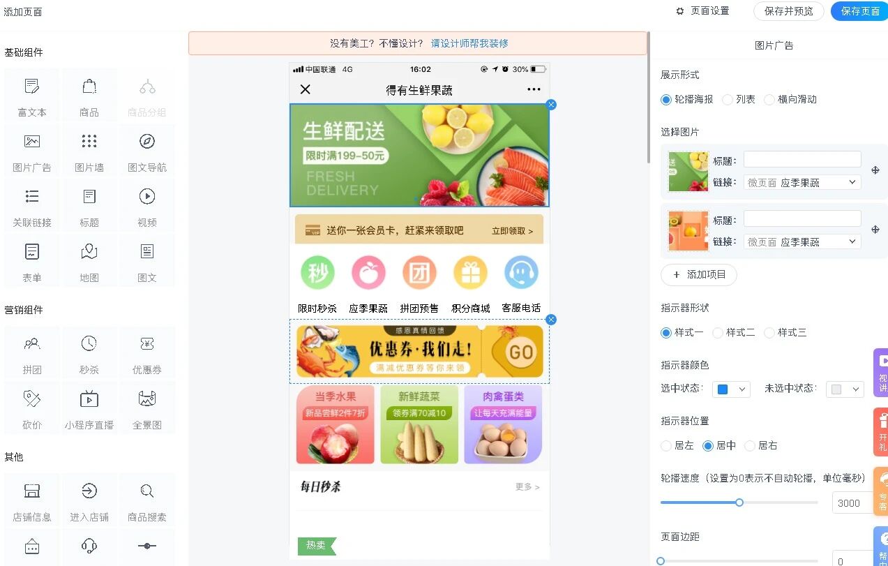 得有店系统提供了183+套主题模板,可直接套用,支持修改;还可自由拖拽组件,个性化装修。