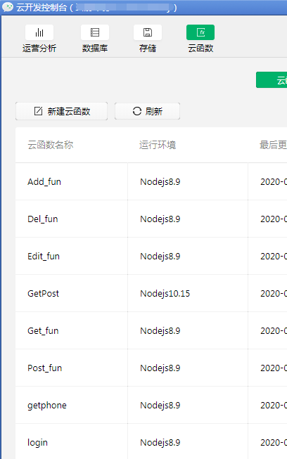 本来是想直接通过小程序联接公司的OA系统数据库,进行一系列的操作就完事了。但后来细想,如果有一天需要更换数据库地址什么的,那又要对整个小程序进行修改和重新编译提交审核,那将是一件比较郁闷的事情。这时候我就想到用云函数,因为云函数在不改变小程序运行代码的情况下只需要通过开发工具进行修改和提交并不需要进行审核。那说做就做,通过云函数建立了增、删、改、查的接口。这几个云函数都是是直接以JSON与我们的OA系统API进行交互。在这里炫耀一下我们的OA系统API程序,这是一个多用途的API程序,是基于.NET core,如果顺利进入复赛就公开这个程序。。(略去API程序介绍的1000字)。