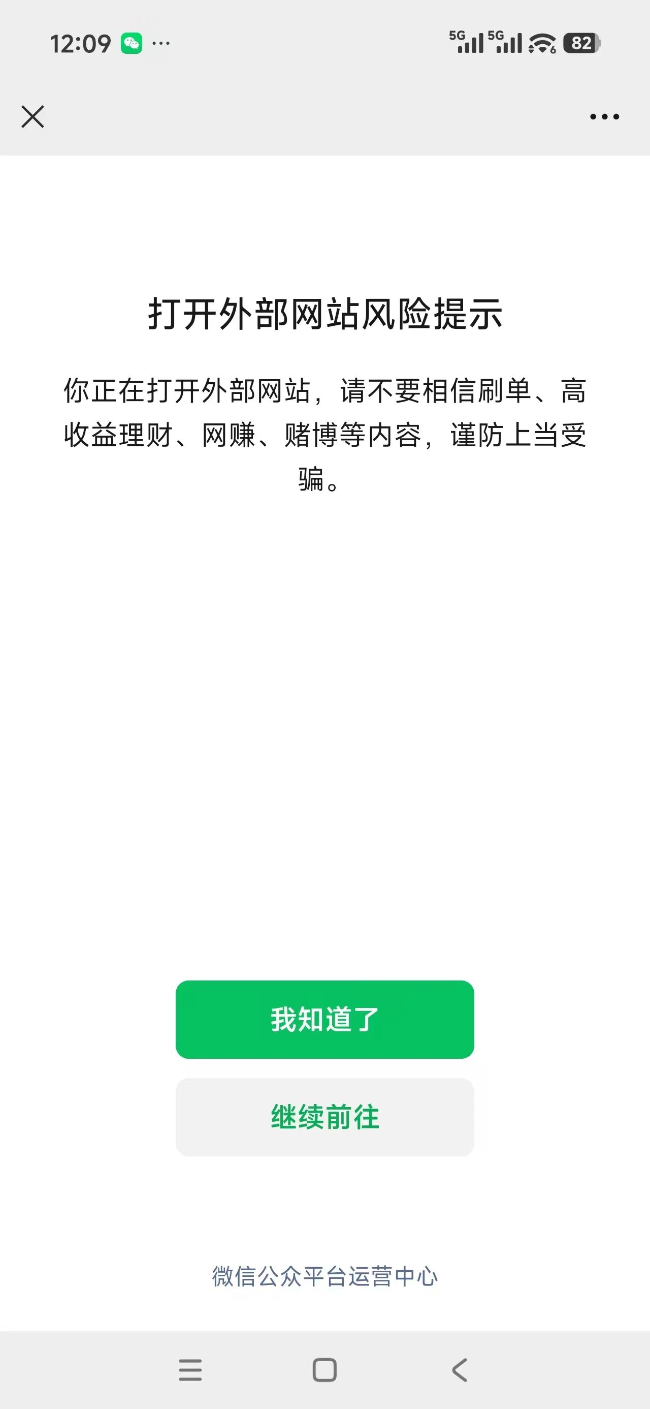 公众号底部菜单链接打开提示,打开外部网站风险提示,但是直接在微信打开没有提示,请问如何解除这个提醒