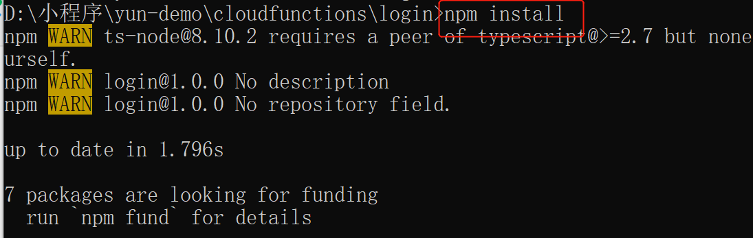 为什么要在云函数目录执行npm install?这是因为npm install会下载云函数目录下的配置文件 package.json 里的 dependencies,它表示的是当前云函数需要依赖的模块。
