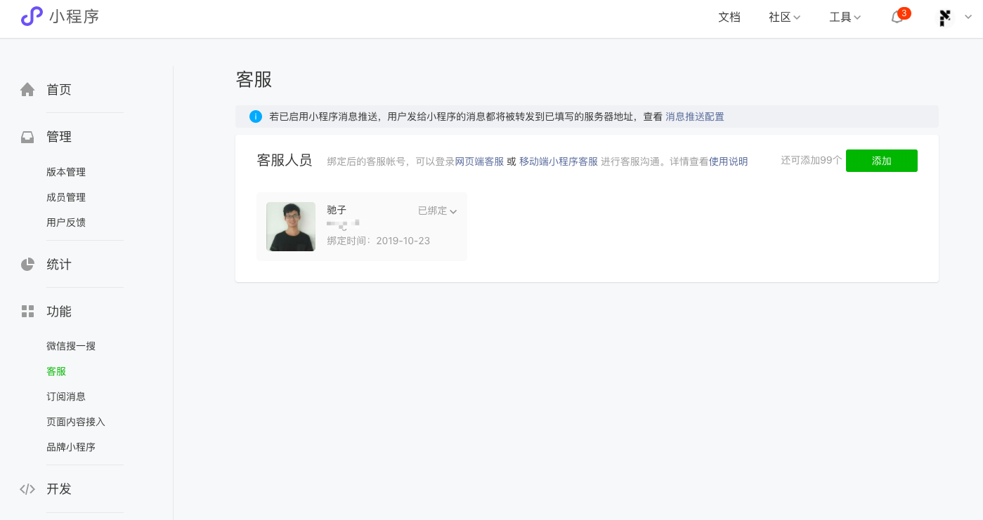 如果按照本教程 客服小助手无法收到消息 或 无法自动回复,可以先将以上消息推送配置删除,然后再微信后台绑定客服后,再重新进行消息推送配置。