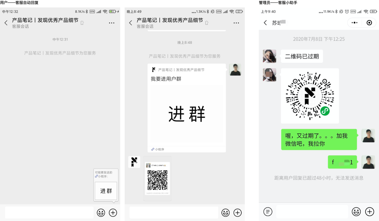 小程序不具备小程序内扫描二维码的能力,因此如果要实现关注公众号或加用户群功能大家一般都利用微信客服功能的自动回复来实现。