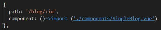 之前实现的[博客]页仅仅展示了博客标题与博客摘要,需要实现点击卡片进入单个博客内部,展示完整内容。这时便需要在路由中设置如下内容: