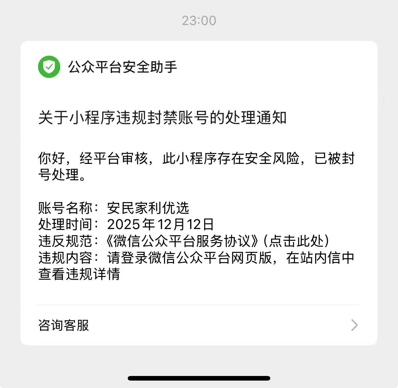 我于2025年12月12日晚18:28:42小程序代码发布成功通过审核,还没进行使用,晚上23:00就通知我存在风险,我立马起来查看,登录官网地址进行人脸识别,保证我的光线是充足的同时我就是管理者,也是用的当管理者的实名认证手机号以及微信去进行人脸识别,为什么不能通过,且也没有其他提示,目前也是已经申诉,我不明白为什么会出现这样的问题,谁能给我一个合理的解释?