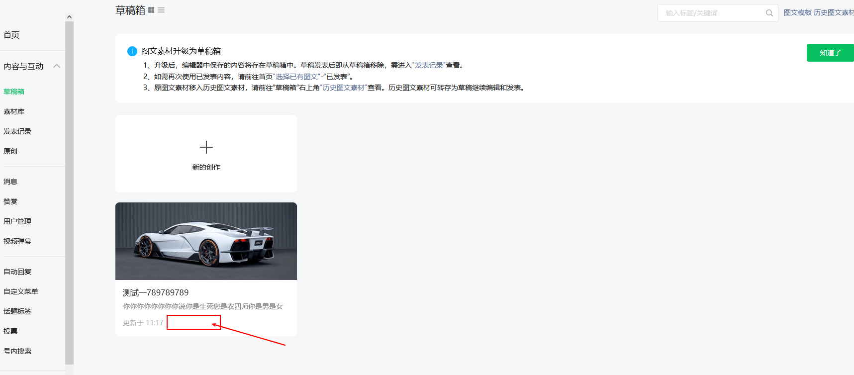 授权后随便建立一个模板然后去到草稿箱文章页面: