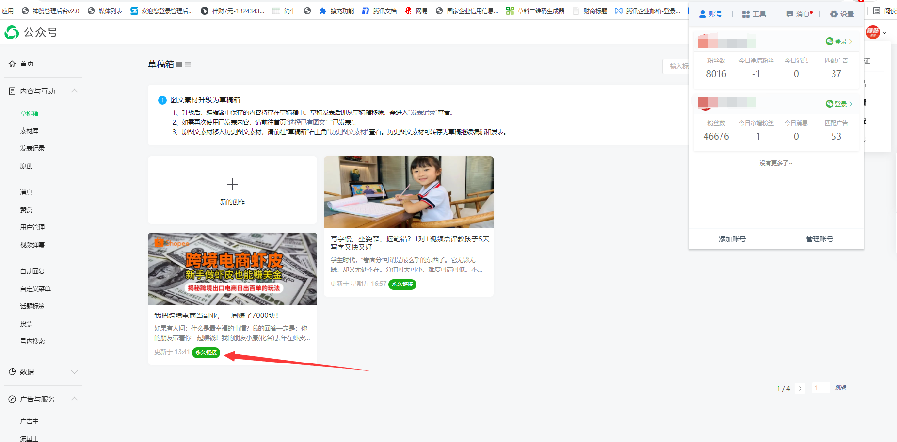 步骤1:登录公众号后台,把原来的图文素材导入到草稿箱:我随便选了一篇以前的图文素材文章: