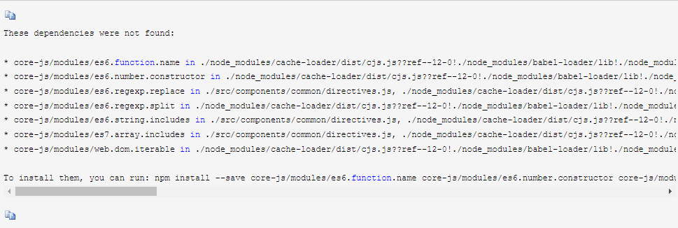 2. 解决vue 依赖core-js版本报错的问题( npm install --save core-js/modules/es6.function.name core-js/modules/es6.number)