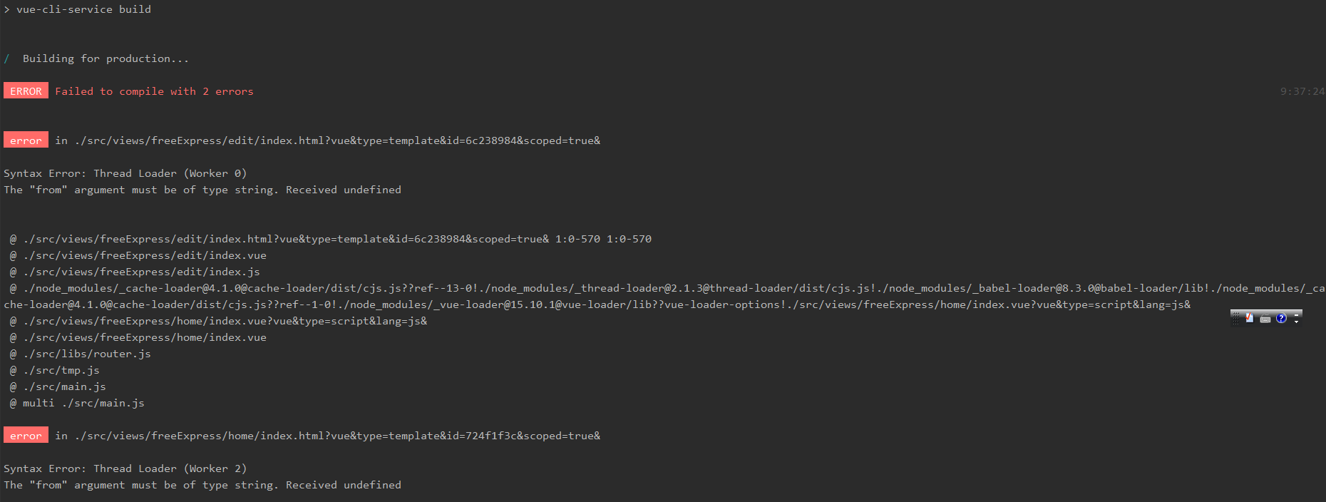 3.vue-cli: Syntax Error: Thread Loader