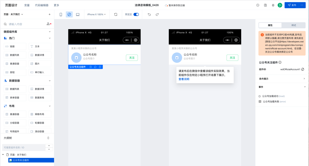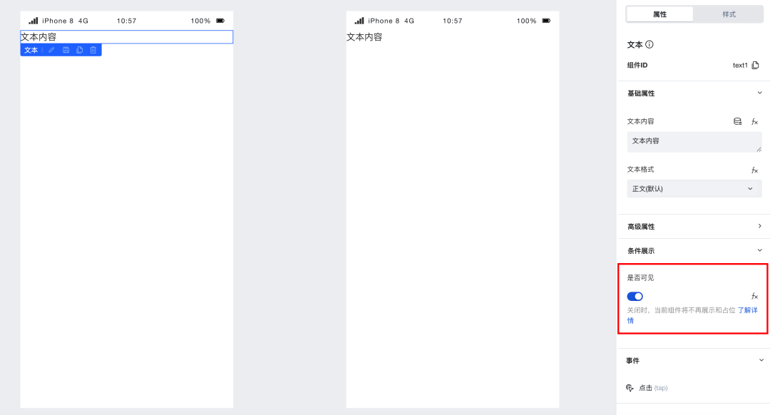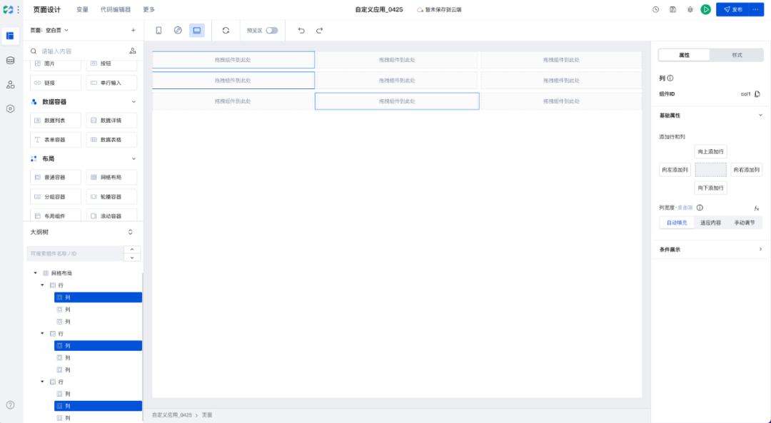 编辑器支持同时选择多个组件,并配置样式和属性,实现批量配置组件提升效率。多选快捷键鼠标按住shift键或command/ctrl键。