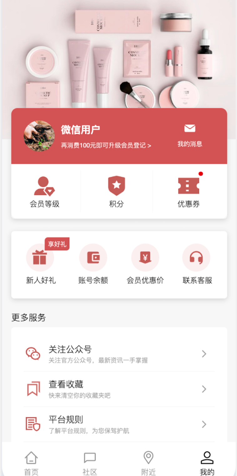 按照常用个人中心功能范围和样式布局,提供个人中心区块,集成客服会话的能力。