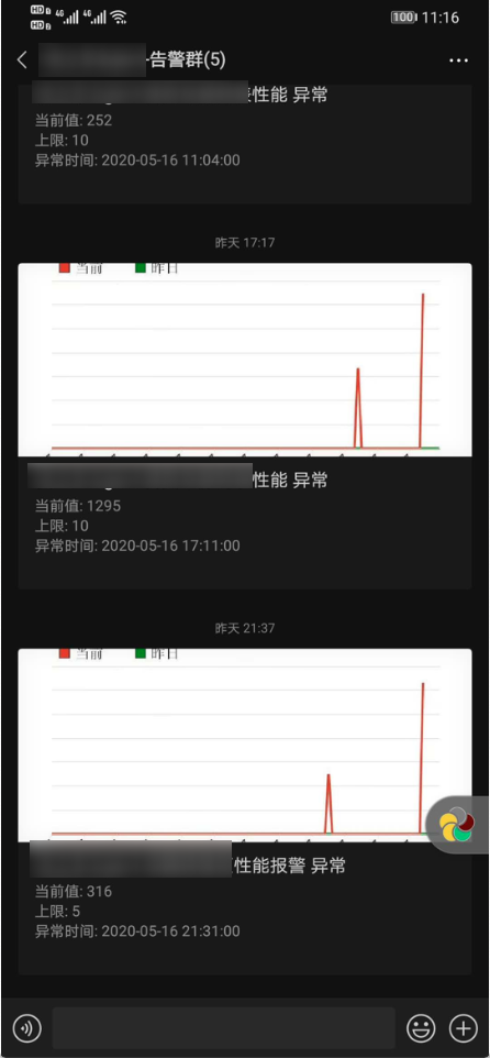 还有一个业务和性能监控报警也是很有用的,比如监控后端接口性能,数据渲染时间,这个对整个小程序产品的品控很有用,比如要求高频后端接口必须在300ms以下的性能要求,当达不到这个性能的时候就会发送报警。