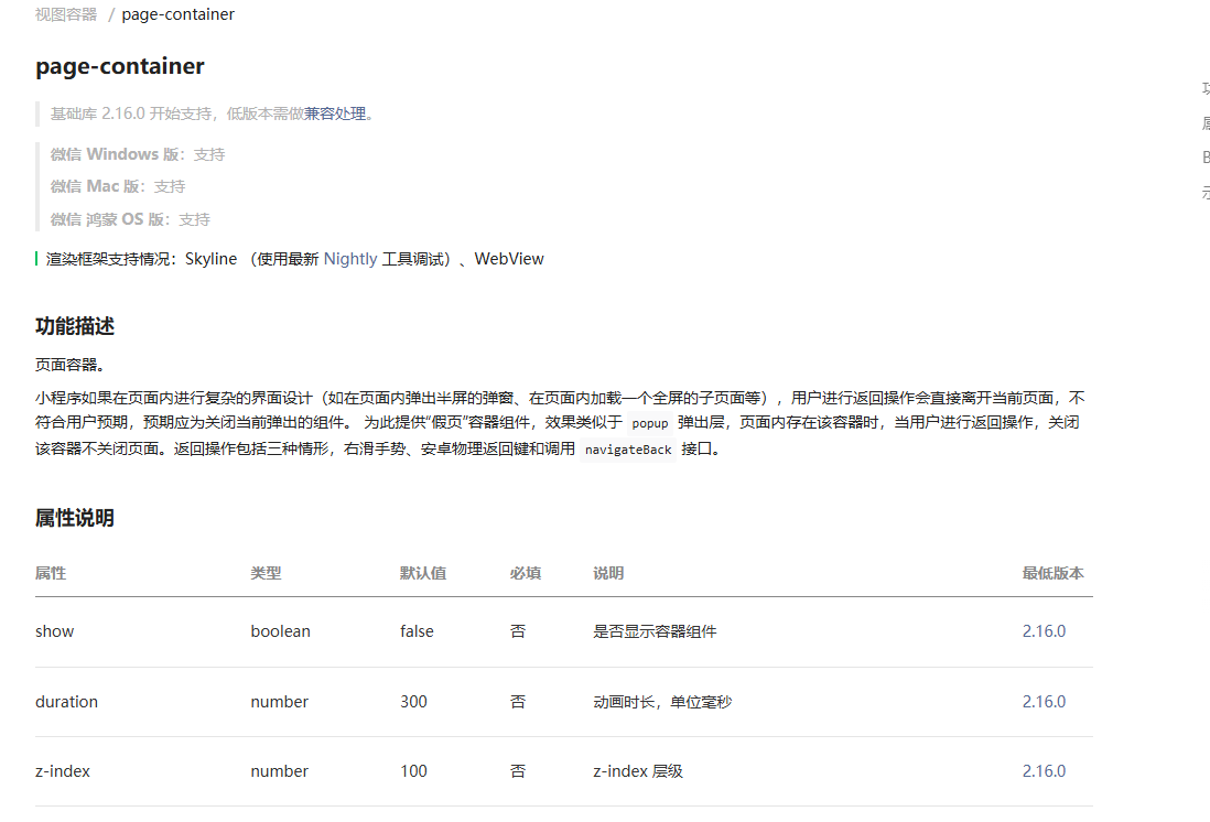 https://developers.weixin.qq.com/miniprogram/dev/component/page-container.html