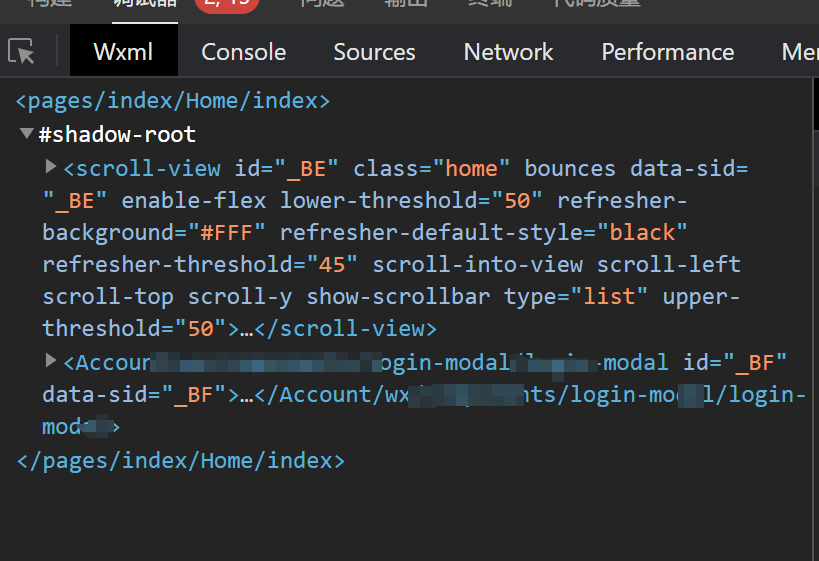 请问下,下面这个结构,我用元素定位,为什么一直获取不到scroll-view的组件呢