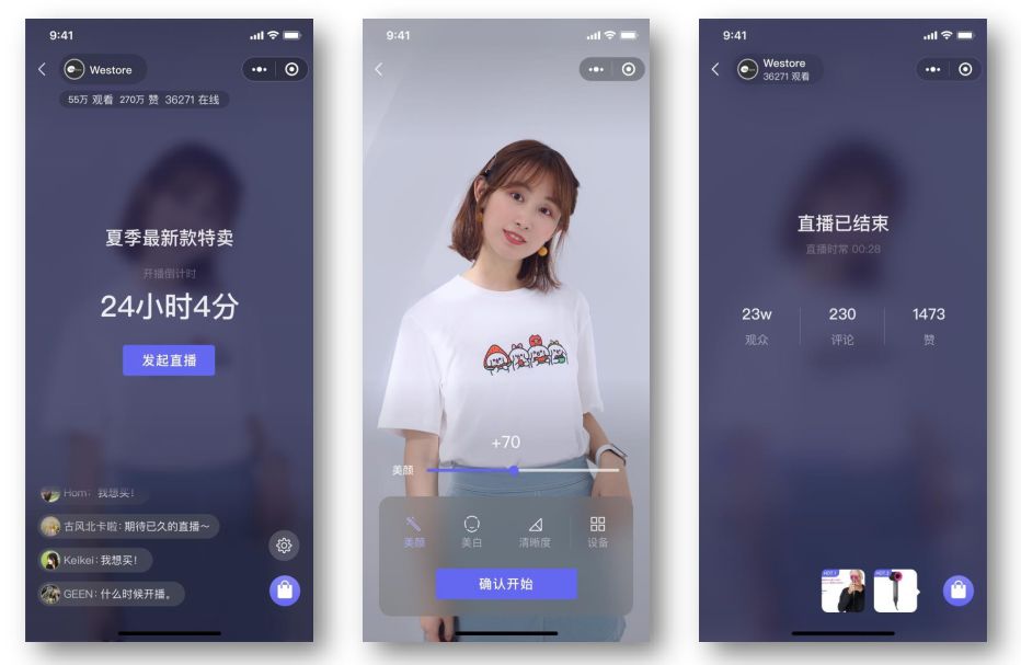 顾客通过小程序预约、观看直播并进行互动及购买;