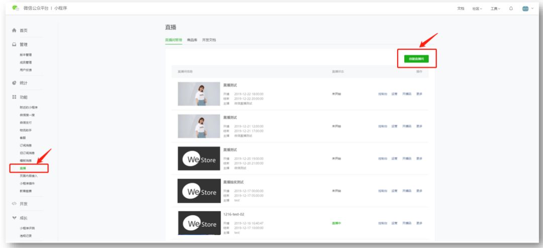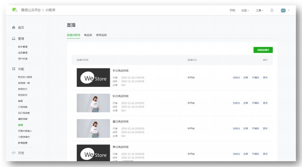 小程序直播是功能组件,需开发后才能投入使用。