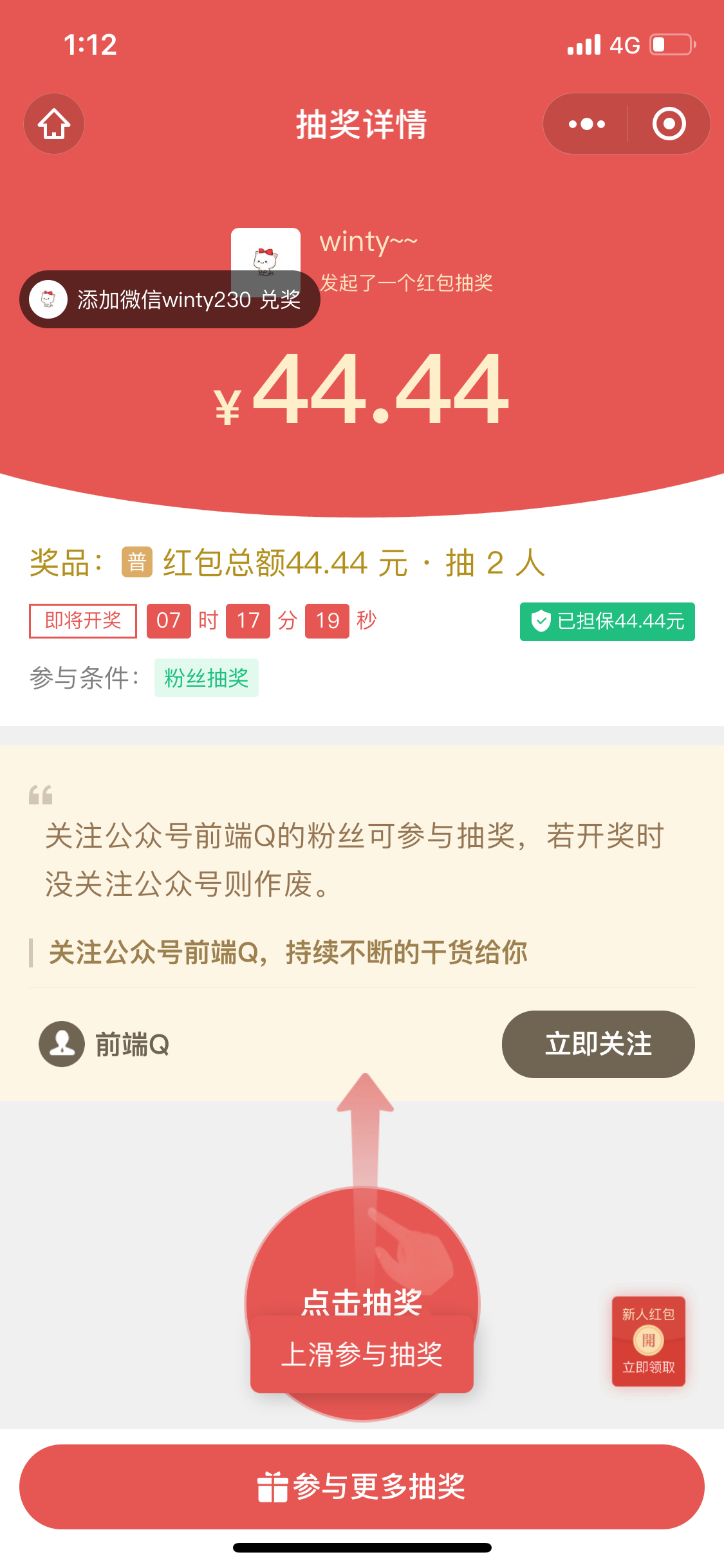 今天中午在某大佬的前端群,看到一个抽奖的活动,体验了下,发现一件很有意思的事情,具体听我我娓娓道来