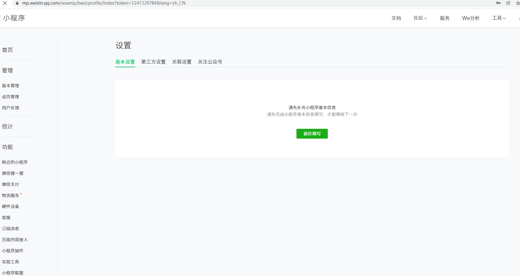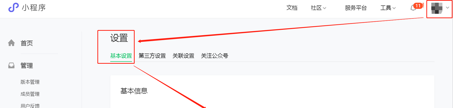 1)右上角小程序头像--基本设置界面--往下滑到最下方账号中心--获取小程序相关信息