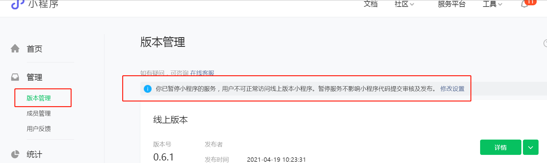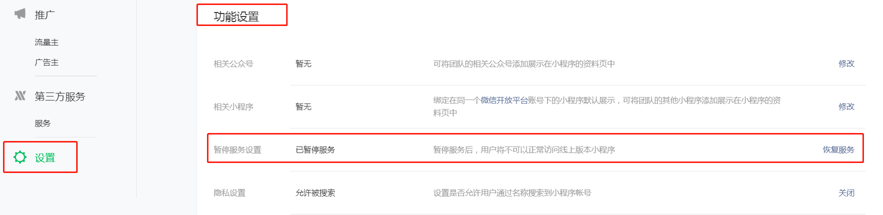 1. 下架版本--暂停服务:注销流程同《一、企业主体小程序注销》