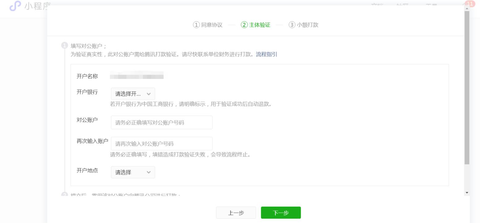 4)填写企业主体基本信息,与小程序主体信息需保持一致