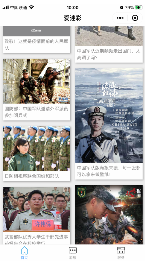 这个是主页面,主要提供各类军事类新闻,让战友了解我国军队的