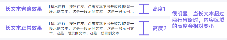 通过上图我们可以发现,当文本区域省略时,它的高度会相对变小,那么我们只需要获取到不省略和省略时的文本区域高度,进行比较就能知道是否超出了两行。