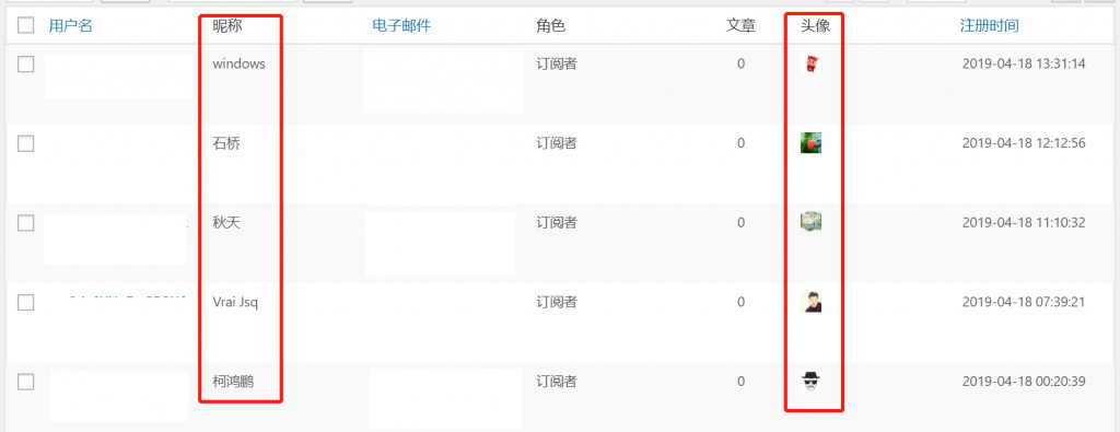 1) 在wordpress的后台增加微信用户的头像,使用微信用户的昵称作为wordpress用户的昵称和显示名,让网站的管理者更方便管理用户。