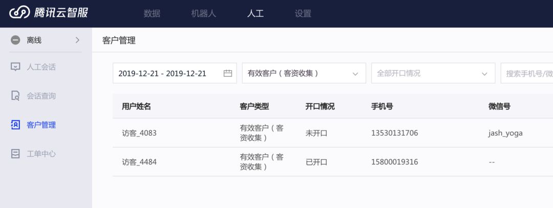 设置生效后,机器人收集的客户资料会自动识别并录入到客户管理系统中,不仅无需客服同学手动敲字,还能区分是从【客资收集】方式获得的有效客户,后期评估有理有据、令人信服。
