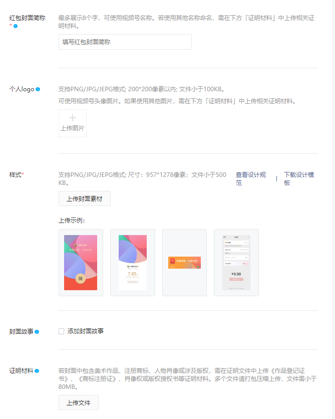 最多可同时在审3款红包封面,待审核完成后可继续提交。