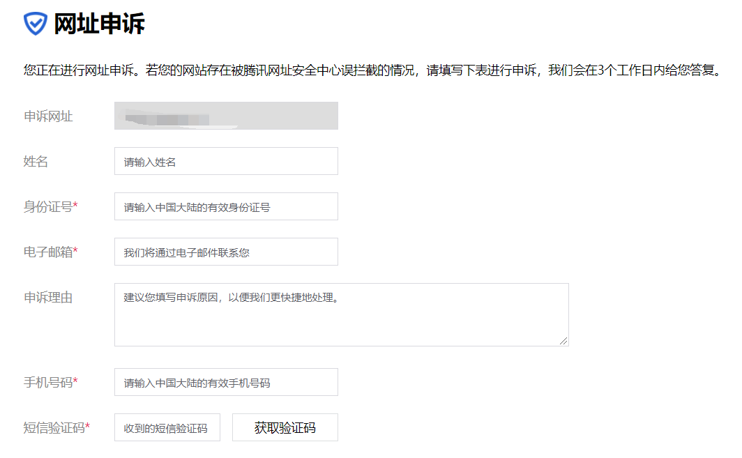 在确认网站内没有违规内容的情况下,可以点击进行申诉,填写必要的信息后,官方会在3个工作日内进行答复。