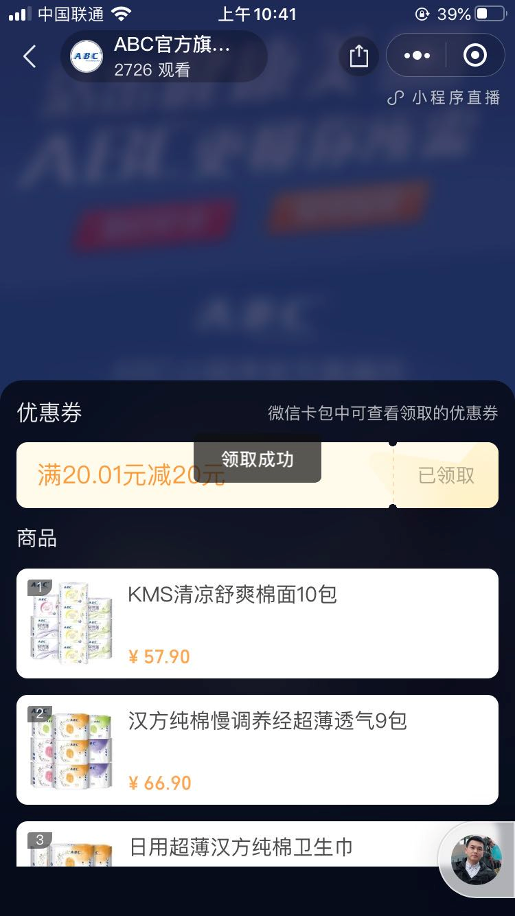 直播间领取的券可直接插入微信卡包(代表着可以提醒一次)。