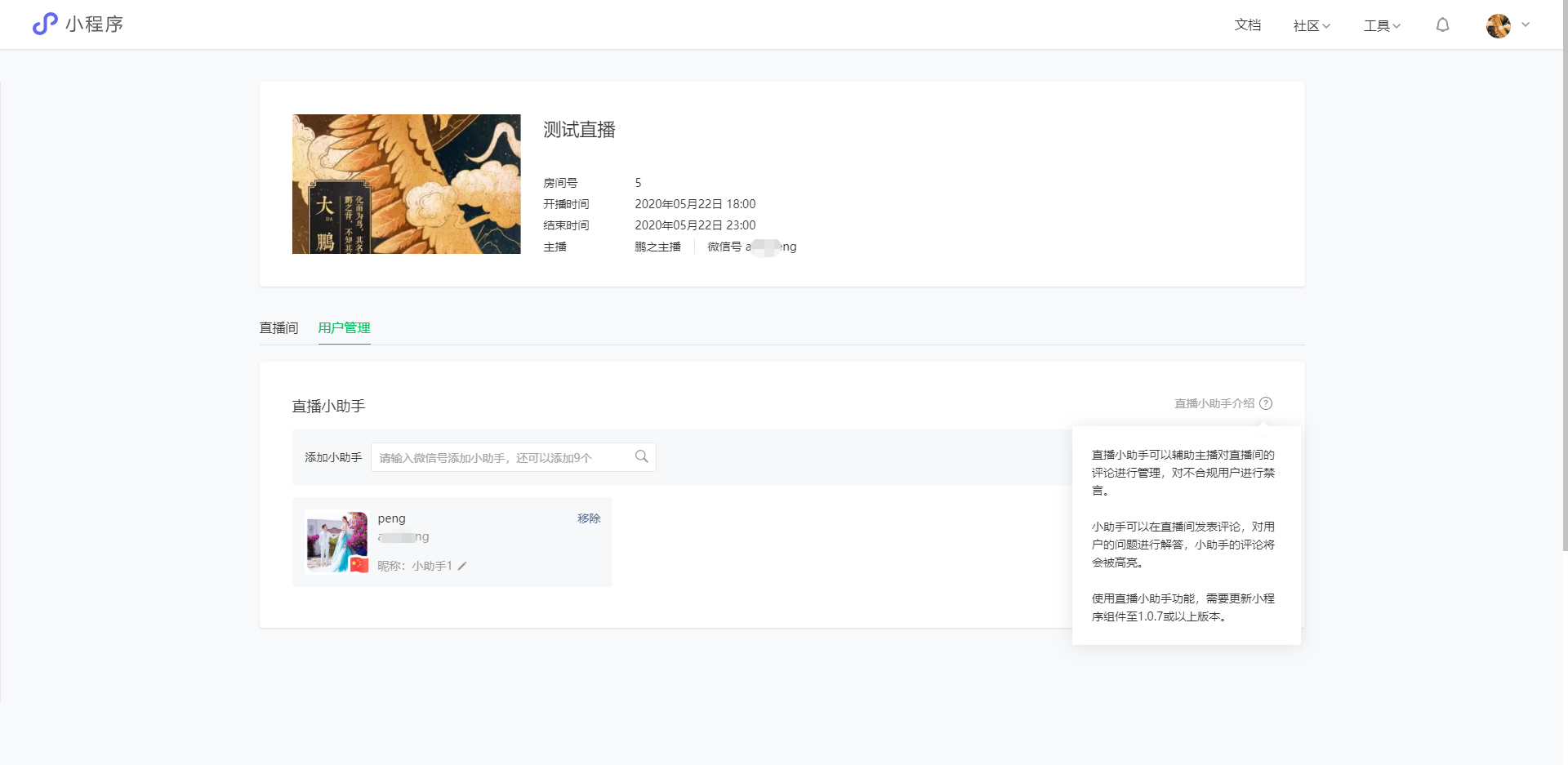 似乎必须是商户独立注册的小程序,才能从mp后台开通直播,管理直播间。而服务商代创建的小程序,是没有mp后台的。